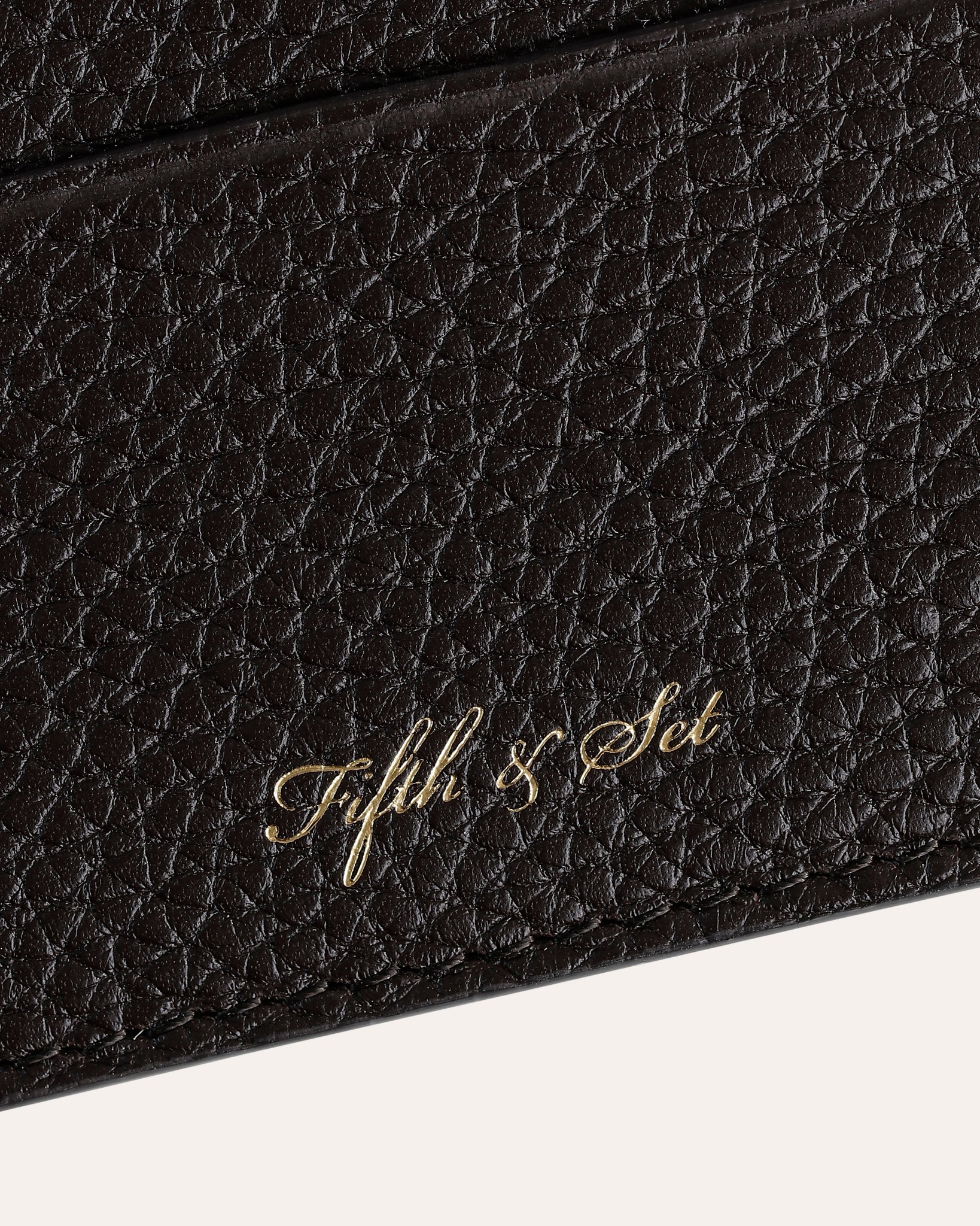 Made by artisans in Ubrique, Spain's famous leather village, this classic card holder is elevated through the use of luxurious Italian pebbled leather. The elegant and understated design makes it a piece for any occasion. Gold Fifth & Set branding can be seen on the front.